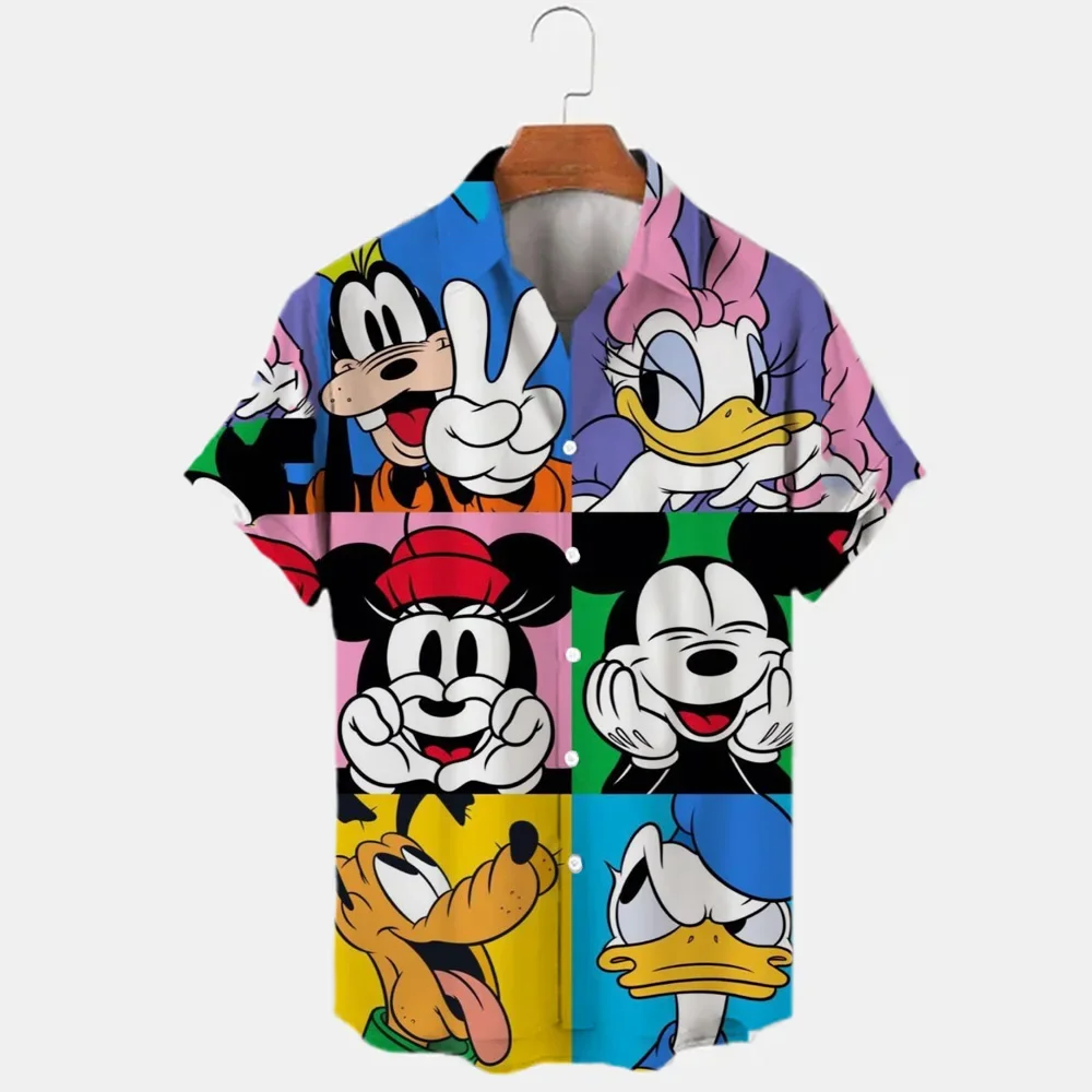Summer Fashion Mickey Minnie Mouse Shirts Men Women Clothes Temperament Men's Hawaiian Shirt Street Trend Retro Boutique Tops